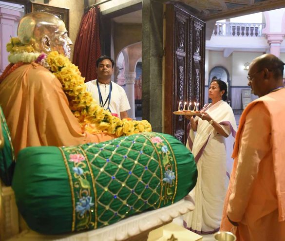 Головний міністр штату Західна Бенгалія Мамата Банерджі відвідала штаб-квартиру ІСККОН у Маяпурі. Вона приземлилася на гелікоптері на території ІСККОН за дві хвилини до призначеного часу й одразу відвідала храм. Ще з повітря вона оглянула величезний храм Ведичного планетарію, відкриття якого призначено на 2022 рік. Мамата...